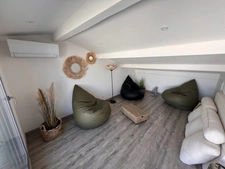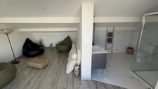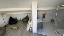 À l’extérieur, une vaste terrasse ensoleillée offre une vue dégagée sur les toits du village, espace idéal pour se relaxer ou organiser des repas en plein air. À proximité immédiate des commerces et des remparts historiques, cette maison de village allie tranquillité, charme et modernité au cœur de la Camargue.