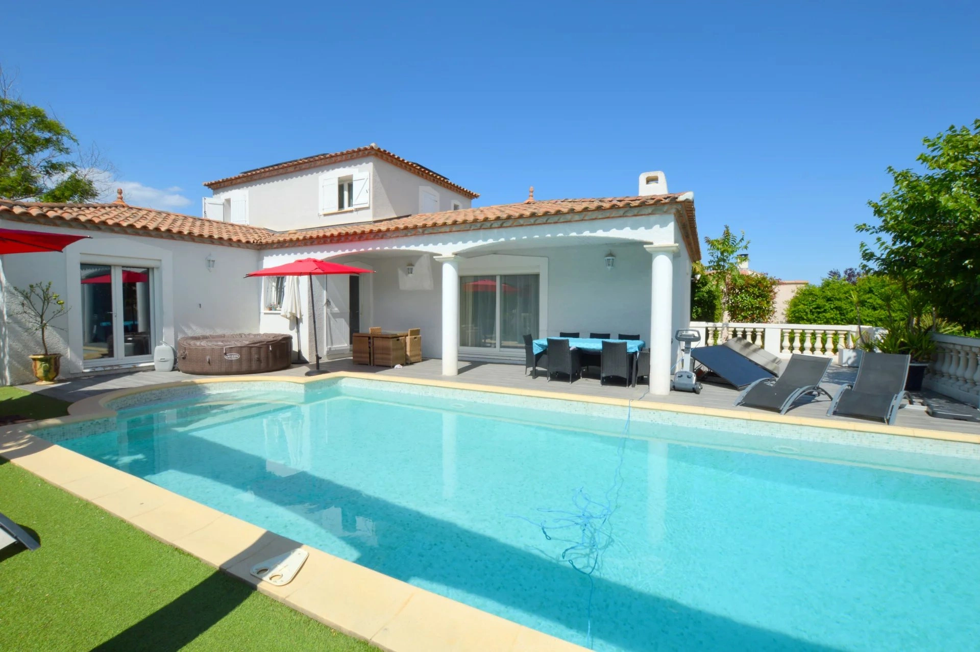 Les plus : Climatisation réversible, Piscine avec pompe à chaleur, arrosage automatique, patio, proximité du tramway et des commerces.