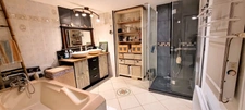 On retrouve un confort de plain-pied avec les 2 chambres du rez de chaussée, une salle de bains avec baignoire et douche, ainsi qu'un premier étage de plus de 60m² avec son palier et 2 chambres : l'aménagement d'un petit appartement est parfaitement envisageable !